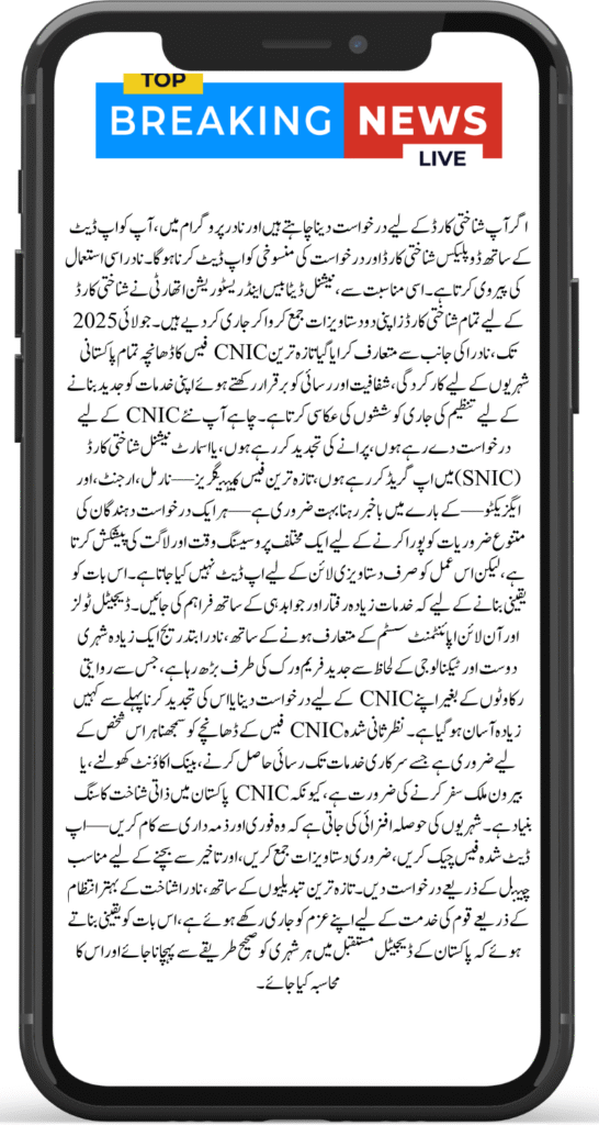 Understanding the revised CNIC fee structure is essential for anyone needing to access government services, open a bank account, or travel abroad, as the CNIC is the cornerstone of personal identification in Pakistan. Citizens are encouraged to act promptly and responsibly, check the updated fees, gather the necessary documents, and apply through the appropriate channel to avoid delays. With the latest changes, NADRA continues its commitment to serving the nation through enhanced identity management, ensuring every citizen is rightfully recognized and accounted for in Pakistan’s digital future.